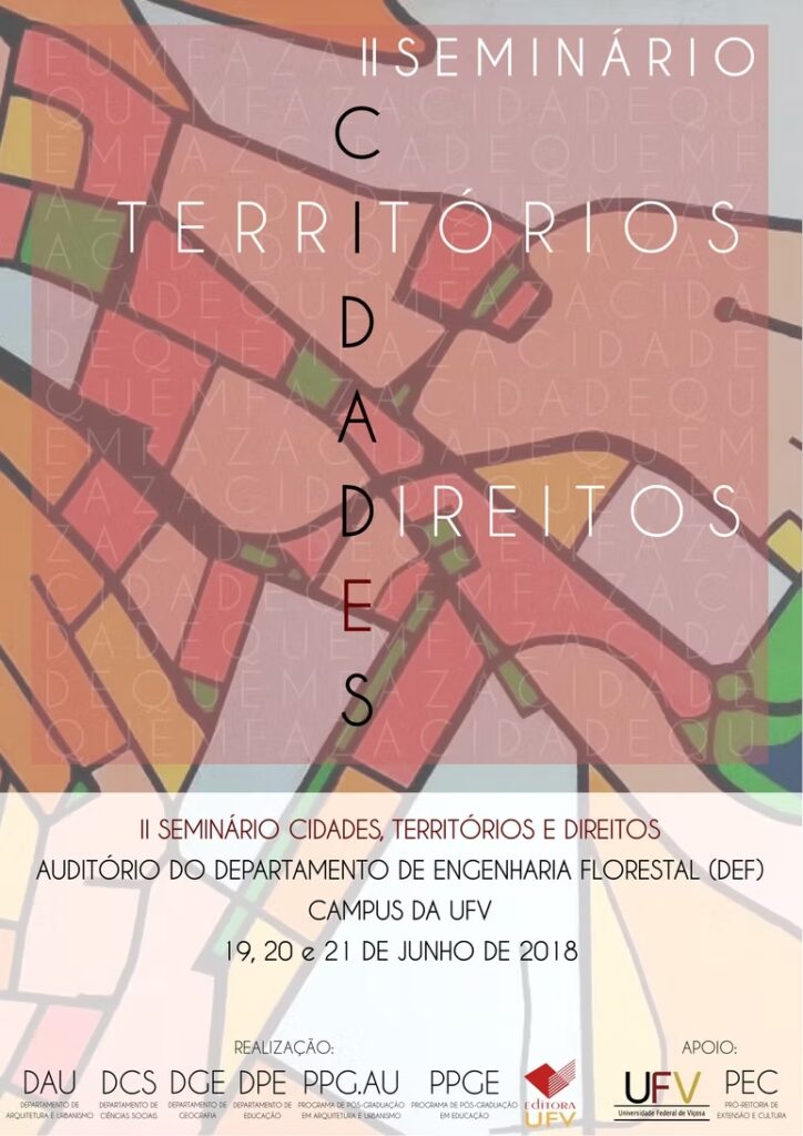 A Universidade Federal de Viçosa realizou, entre os dias 31 de maio e 02 de junho de 2016, o I Seminário “Cidades, territórios e direitos”. A proposta foi refletir sobre a temática das cidades, seus territórios e o distinto acesso aos direitos, além de situar a própria cidade na lógica global.